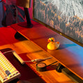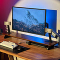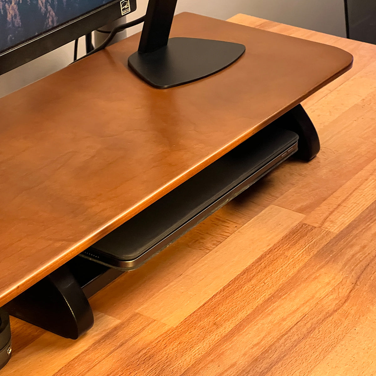The desk shelf is designed to support multiple devices; you can store your laptop, iPad, keyboard, and mouse underneath.